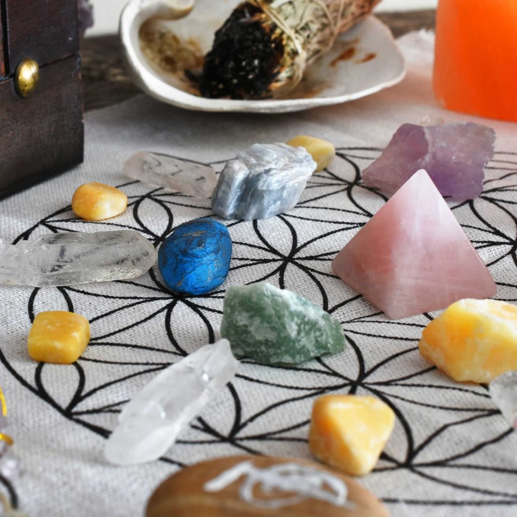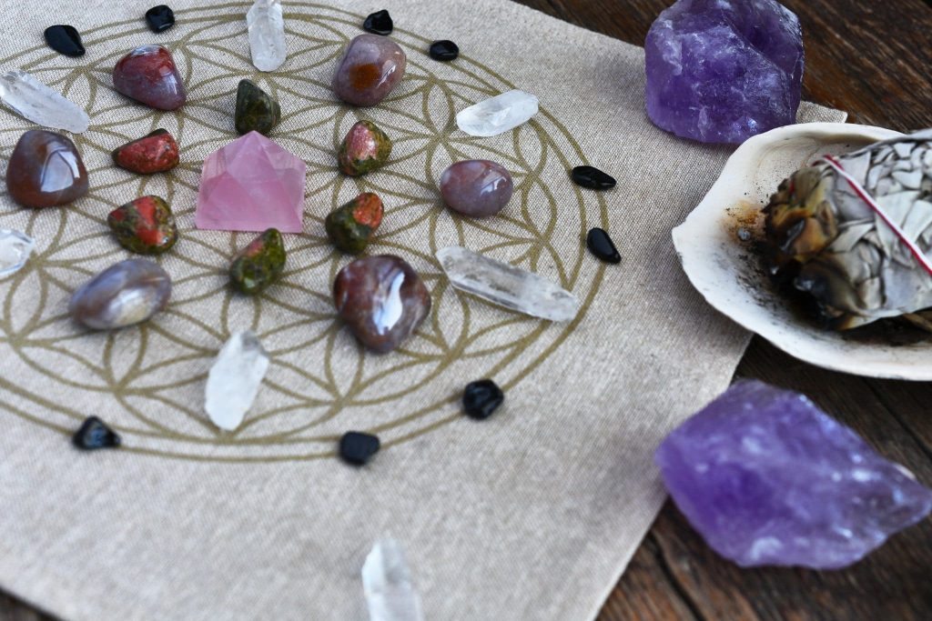 A crystal grid is a geometric arrangement of healing crystals that are placed with the intention to amplify and direct energy on a specific chakra.